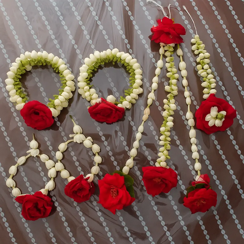 Complete your mehndi or mayoun look with our Traditional Gajra Flower Jewellery Set – Jasmine & Red Roses.