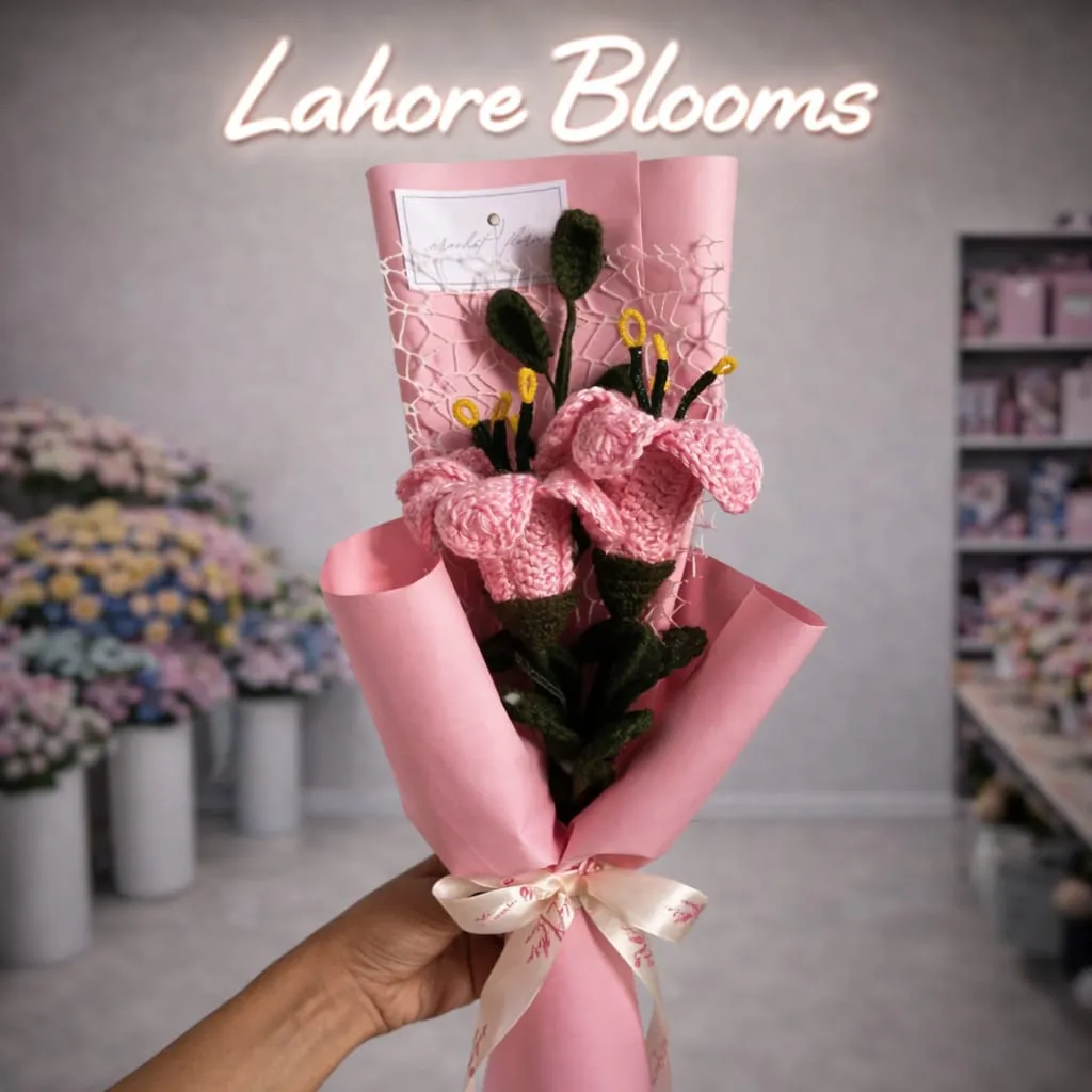 Simple, Elegant & Everlasting – Pink Crochet Lily Bouquet in Lahore