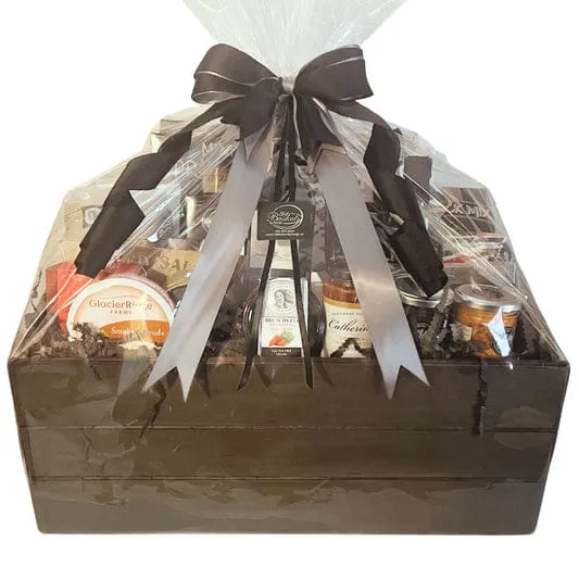 • Presentation: Large dark premium gift box, wrapped in clear cellophane with a luxury dark satin ribbon bow